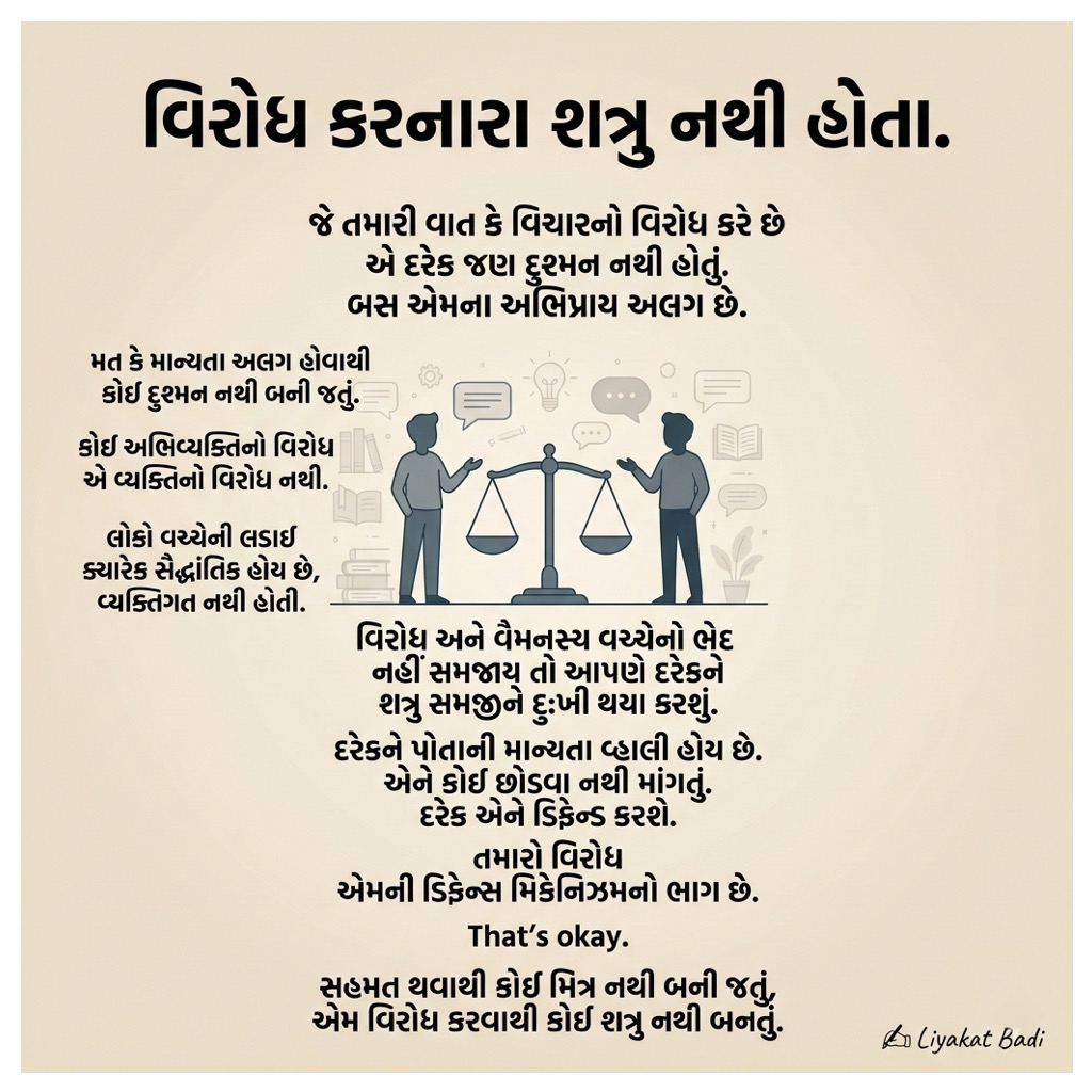 જે તમારી વાત કે વિચારનો વિરોધ કરે છે એ દરેક જણ દુશ્મન નથી હોતું.